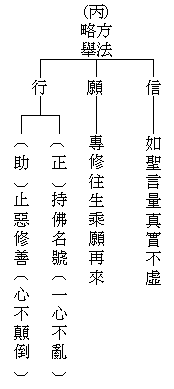 修行有正助双修。‘正行’是‘持佛名号’:二六时中这一句阿弥陀佛不能间断,用这个方法达到‘一心不乱’。‘助修’是‘止恶修善’:要持戒,持戒的意义是断恶修善,达到‘心不颠倒’的目标。