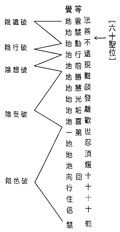 从色究竟天。上出有二岐路。一系顿超四空。即出三界。二系渐历四空。或出不出。顿超者。于穷色性性。色空交际之处。发明色即空。空即色之智慧。以此智慧之光。圆融通达。色空不二。便出色空二种尘界。不受三界分段生死。成阿罗汉果。梵语阿罗汉。此云无生。即不受三界生死也。小乘一向弃有著空。正到空界时。而不入空界。知空亦有故。如是空有俱空。故入中道。向菩萨乘。是名回心大阿罗汉。