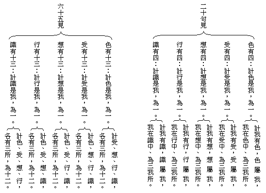 又一切众生,由于无始以来的内在和外诱的实执习气的熏习,计执诸法为实有固性的自体,起人法二种我执。我你他、情非情,一切的一切,凡所见闻者,莫不以为有独立的我法自性。由这种妄执,起惑造业,流转生死,不得解脱。但是观察这包括一切法尽的五位法类,无论为事为理,或各别的单位,积聚的总和,以理推证,都找不出如众生所计执的固性我法的自体。所以明白了五位百法,也就能够从道理上通达人法二种无我的意义。这里分别地解说如下:
