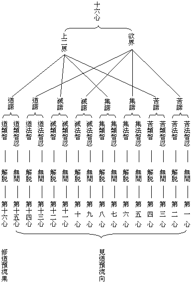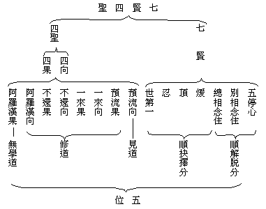 资粮加行二位,皆以有漏的加行智为体。见道位以根本后得无漏二智为体。修习位十地,皆以有为无为诸功德法为体。究竟位即以如来菩提涅槃以为其体。